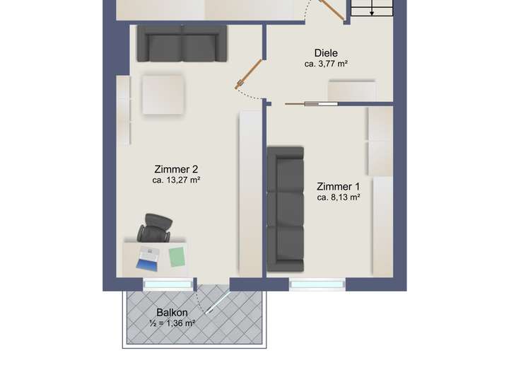 Nebenkosten: ca. 2 % Notar- und Gerichtskosten sowie 5,5 % gesetzlicher Grunderwerbsteuer