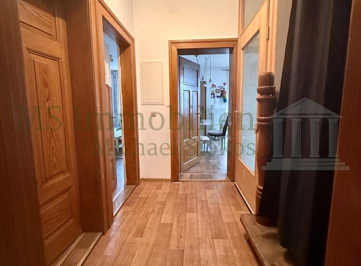 Die Wohnung im Erdgeschoss verfügt über ein Wohnzimmer, ein Schlafzimmer, ein kleines Durchgangszimmer eine Küche sowie ein Badezimmer mit Badewanne.