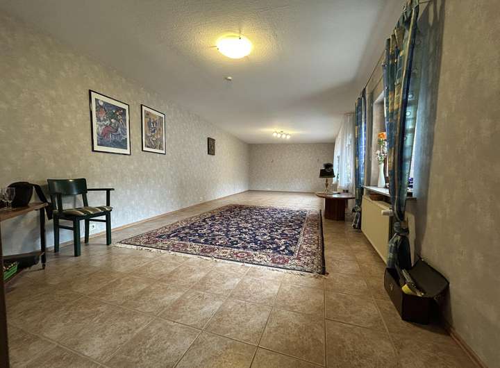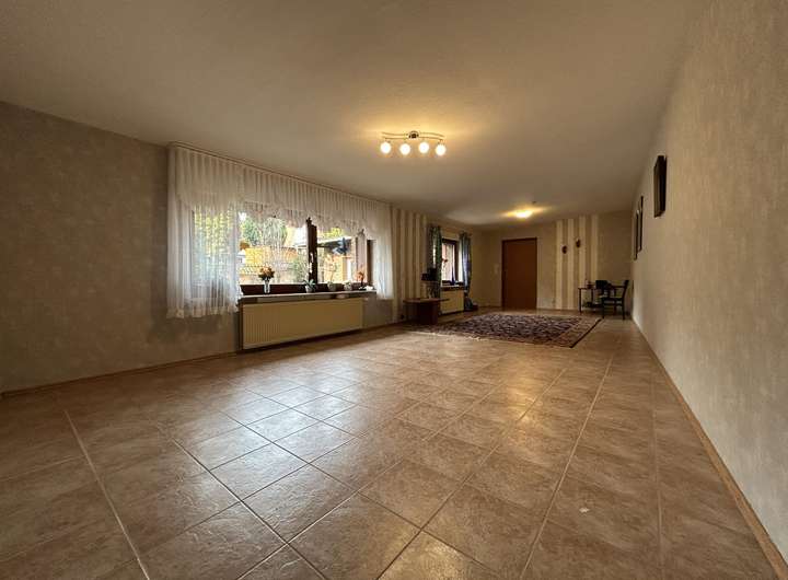 Herzstück des Hauses ist das großzügige Wohnzimmer mit ca. 38 m². Durch eine mögliche Teilung lässt sich hier ein weiterer Raum schaffen – beispielsweise ein zusätzliches Schlafzimmer oder Arbeitszimmer.