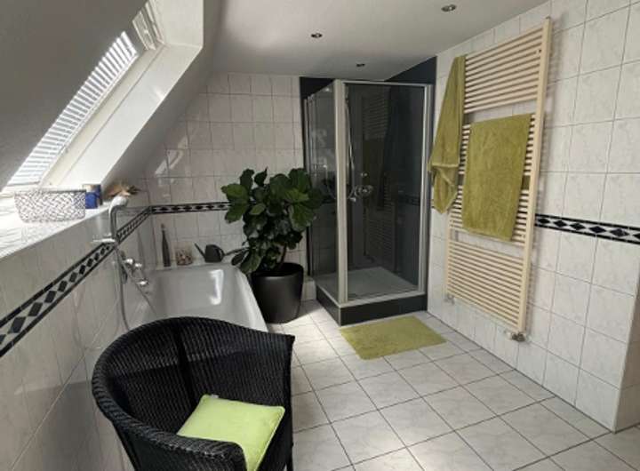 Im Obergeschoss erwarten Sie drei großzügige, helle Zimmer, die vielfältige Nutzungsmöglichkeiten bieten – ob als Kinder-, Arbeits- oder Schlafzimmer. Ein großes Tageslichtbad mit Dusche und Badewanne, ein Abstellraum sowie praktische Einbaulösungen runden das Raumangebot ab und schaffen zusätzlichen Stauraum.