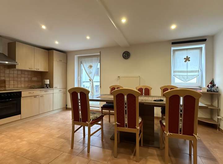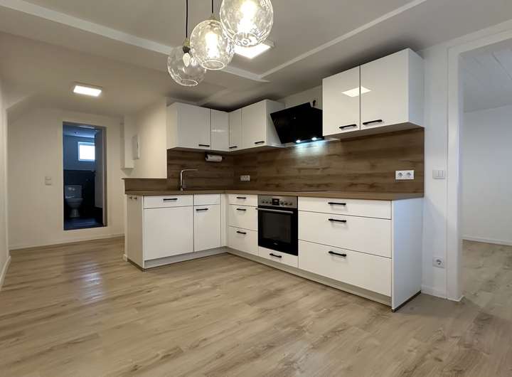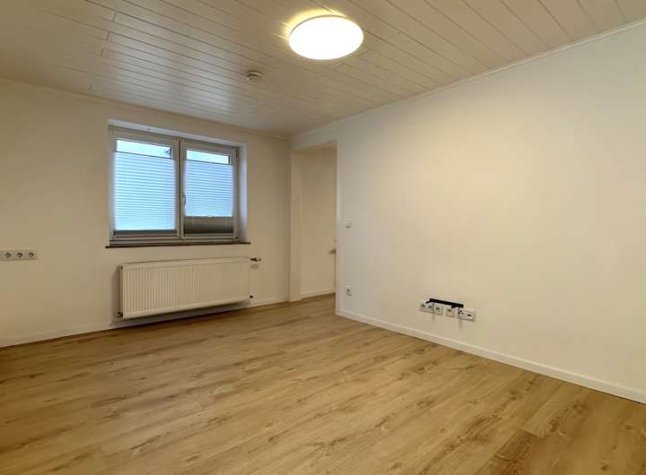 Im Erdgeschoss befindet sich eine abgeschlossene Wohneinheit, ideal zur Vermietung oder als Gästebereich. Sie umfasst ein helles Wohnzimmer, ein Schlafzimmer, eine moderne Einbauküche aus dem Jahr 2021 mit optimaler Raumnutzung sowie ein zeitgemäßes Bad mit bodengleicher Dusche. Zusätzlich wurden 2021 die Elektro- und Wasserleitungen im Erdgeschoss erneuert.