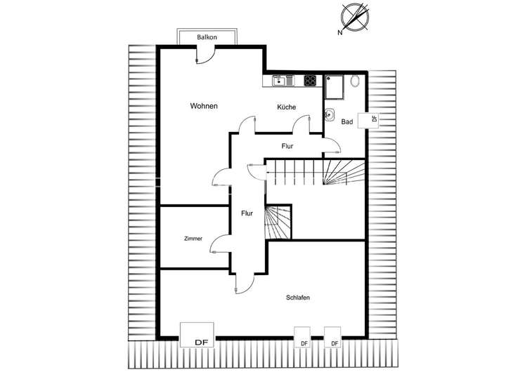 Das Dachgeschoss verfügt über 2-Zimmer zuzüglich. Spitzboden und ist seit 01.08.2011 vermietet.