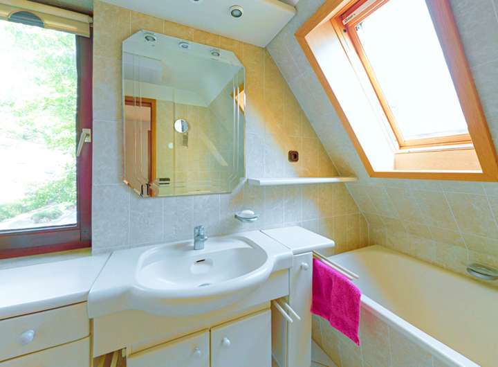 Das Dach wurde im Jahr 2001 vollständig erneuert, mit glasierten und schmutzabweisenden Dachpfannen eingedeckt und zusätzlich nach damaligem Standard gedämmt. Es befindet sich in einem sehr guten Zustand und trägt wesentlich zur soliden Gesamtsubstanz des Hauses bei.