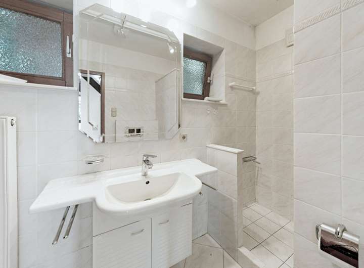 Die Garage ist in das Haus integriert, beheizbar und über den Keller direkt zugänglich. Sie verfügt über eine Durchfahrtsbreite von ca. 2,15 m und eine Höhe von etwa 1,80 m. Eine Pumpe zur Entwässerung ist vorhanden, um bei Starkregen oder Rückstau ein sicheres Abpumpen des Wassers zu gewährleisten. Der Keller umfasst etwa zwei Drittel der Hausgrundfläche und bietet mehrere Nutzräume, darunter Heizungsraum, Waschküche und Hobbyraum. Die elektrische Anlage wurde im Rahmen der Kernsanierung 1979 vollständig erneuert; der aktuelle Sicherungskasten entspricht dem modernen Standard (2000 er). Die Fenster stammen überwiegend aus den späten 1970er-Jahren und sind zweifach verglast. Das Dach aus dem Jahr 2001 wurde vollständig neu eingedeckt, gedämmt und befindet sich in sehr gutem Zustand. Das Grundstück ist gepflegt, vollständig eingefriedet und kaum einsehbar. Eine massive Gartenhütte mit Kamin sowie eine zusätzliche Gerätehütte sind vorhanden.
