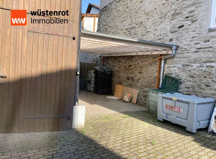 Auf dem Grundstück hinter dem Haus bietet die Scheune viele Möglichkeiten um diverse Gegenstände unterzubringen. Daneben können Sie Ihr Kfz im Carport parken. Der Innenhof bietet einen vor Blicken geschützten Freiplatz.