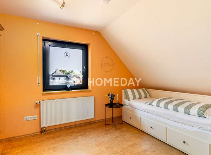 Die Einliegerwohnung befindet sich im Garagentrakt des Hauses und verfügt über einen separaten Eingang. Auf rund 50 Quadratmetern Wohnfläche bietet sie ein freundliches Wohnzimmer mit offener Küche, ein gemütliches Schlafzimmer sowie eine Toilette im Obergeschoss. Im Erdgeschoss des Garagentraktes, direkt im Flurbereich der Einliegerwohnung, befindet sich zudem ein helles Badezimmer mit Badewanne und separater Dusche, das den Komfort dieser Einheit zusätzlich unterstreicht. Die Einliegerwohnung ist aktuell vermietet.