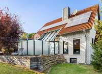 Im Erdgeschoss der Hauptwohnung empfängt Sie ein einladender Flurbereich, von dem aus Sie, vorbei an einem Gäste-WC, in die Küche samt neuer Einbauküche gelangen. Sie überzeugt mit modernem Design, hochwertigen Geräten und einer klaren Linienführung – perfekt für alle, die gerne kochen und genießen. Der angrenzende Wohn- und Essbereich bildet das Herzstück des Hauses: Große Fensterflächen sorgen für einen beeindruckenden Galerieeffekt und lassen viel Licht in den Raum, während der Kaminofen für eine behagliche Atmosphäre sorgt. Der Galeriebereich wurde 2019 liebevoll erneuert und verleiht dem Raum einen frischen, modernen Charakter. Von hier aus gelangen Sie auf die überdachte, windgeschützte und ca. 50 Quadratmeter große Terrasse, die zu entspannten Stunden im Freien einlädt – ob beim Grillabend mit Freunden oder einem ruhigen Moment mit einem Buch. Hinzu kommt ein weiteres Zimmer, dass sich beispielsweise als Büro oder Gästezimmer eignet.