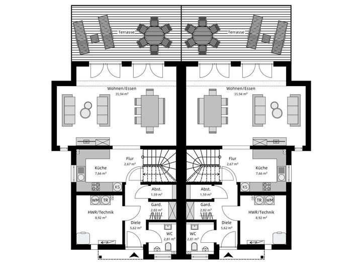 Die gehobene Ausstattung des Doppelhauses rechts umfasst hochwertige Bodenbeläge aus Fliesen, die nicht nur optisch ansprechend sind, sondern auch pflegeleicht und langlebig. Sie haben die Möglichkeit, diese nach Ihren Wünschen zu wählen und somit Ihrem persönlichen Stil Ausdruck zu verleihen. Die Befeuerungsart erfolgt über eine effiziente Wärmepumpe, die nicht nur umweltfreundlich ist, sondern auch die Heizkosten senkt. Mit dem Energietyp KfW 40 Standard profitieren Sie von einem hohen Maß an Energieeffizienz und tragen aktiv zum Klimaschutz bei. Die ausgezeichnete Schallisolierung der STREIF-Wandkonstruktion garantiert zudem ruhiges Wohnen, selbst in einer belebten Nachbarschaft.
