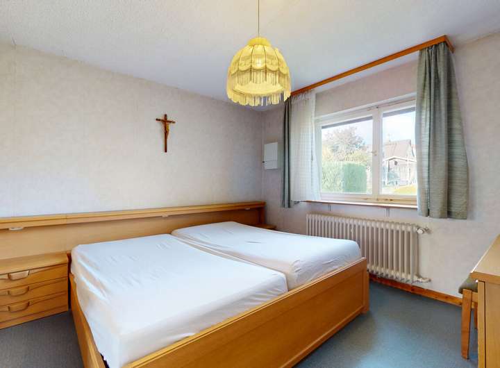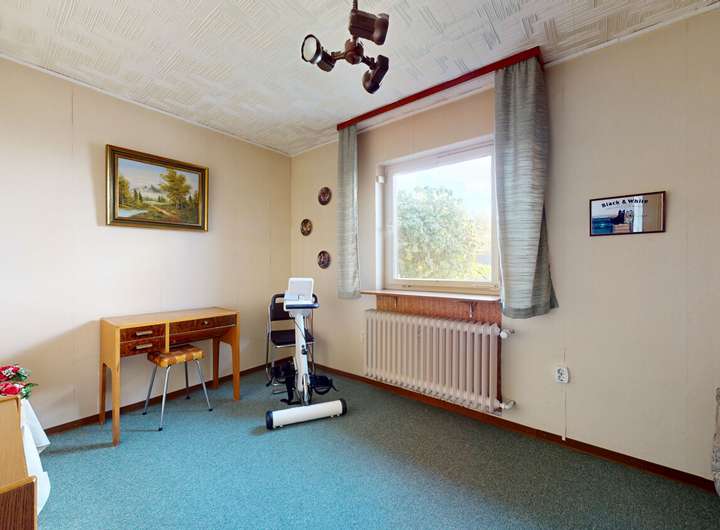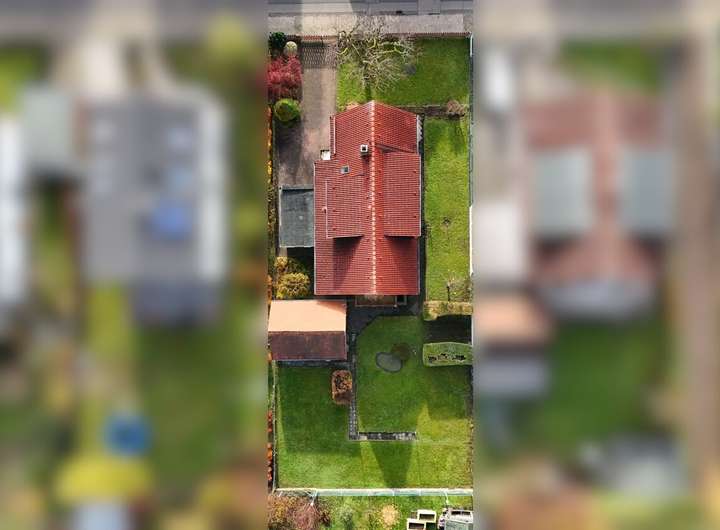 Das freistehende Ein- bis Zweifamilienhaus befindet sich in einer ruhigen und gepflegten Wohngegend mit weitläufigen, schönen Gärten. Das in den 1930er Jahren erbaute Haus wurde in den 1960er Jahren durch einen Anbau erweitert.