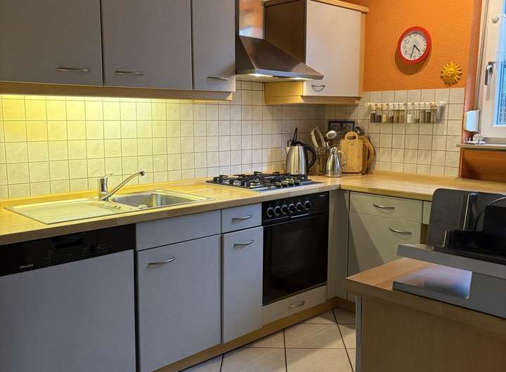 Dieses Reihenmittelhaus befindet sich in guter Lage in Bad Kreuznach-Süd. Mit rund 120 m² Wohnfläche und 6 Zimmern bietet es auf zwei Etagen viel Platz für Ihre Familie. Das Haus ist in sehr gutem Zustand und verfügt über ein Grundstück von ca. 200 m² mit Garten und Terrasse. Ein Gäste-WC mit Dusche im Erdgeschoss sowie ein weiteres Badezimmer im 1. Stock sind vorhanden. Das Haus ist voll unterkellert. Ein großer Kellerraum ist als Mehrzweckraum mit Isolierung und Wandverkleidung sowie Heizung ausgebaut. Die geräumige Waschküche ist komplett gefliest. Darüber hinaus gibt es einen großen Vorratskeller und zusätzlichen Stauraum. Die Terrasse wurde unterkellert, wodurch ein zusätzlicher, rund 20 qm großer Raum entstanden ist, der als Werkstatt o.ä. genutzt werden kann. Der Speicher ist mit Styropor gedämmt. Das Dach wurde 2020 komplett neu gedeckt. Eine Garage mit elektrischem Rolltor und Stellplatz in unmittelbarer Nähe zum Haus gehören ebenfalls zum Angebot. Aktuell ist das Haus noch teilweise möbliert. Der Verkauf erfolgt direkt vom Besitzer ohne weitere Maklerprovision o.ä.. Eine Besichtigung nach vorheriger Terminabsprache ist ab sofort möglich.