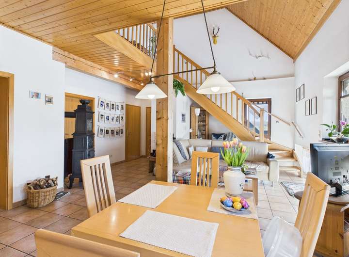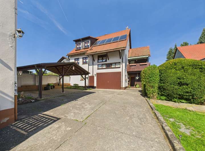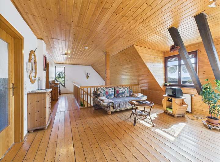 Dieses liebevoll umgebaute Einfamilienhaus in Usingen-Wernborn wurde ursprünglich als Scheune gebaut und zu einem modernen Wohnhaus mit rustikalem Charme umgestaltet. Es bietet ca. 147 m² Wohnfläche, ideal für Familien, Paare oder alle, die das Besondere suchen. Das Haus verfügt über einen offenen Wohn-Essbereich im Obergeschoss mit Galerie, eine Küche mit Zugang zum Balkon, ein Badezimmer mit Badewanne und Dusche, ein Schlafzimmer mit Ankleidezimmer, ein Gäste-WC sowie ein Abstellraum. Im Dachgeschoss befindet sich eine Galerie und ein weiteres Zimmer, perfekt als Kinder- oder Arbeitszimmer, ergänzt durch ein Duschbad. Im Erdgeschoss sind eine Werkstatt, Waschküche und Garage, mit direktem Zugang zum großen Garten, der viel Platz für Freizeit und Erholung bietet. Ein zusätzlicher Schuppen bietet Stauraum für Gartengeräte. Der Heizungskeller mit Öl-Zentralheizung und 6.000-Liter-Tank ist von außen zugänglich. Das Grundstück ist von einem Doppelcarport und Hof umgeben.
