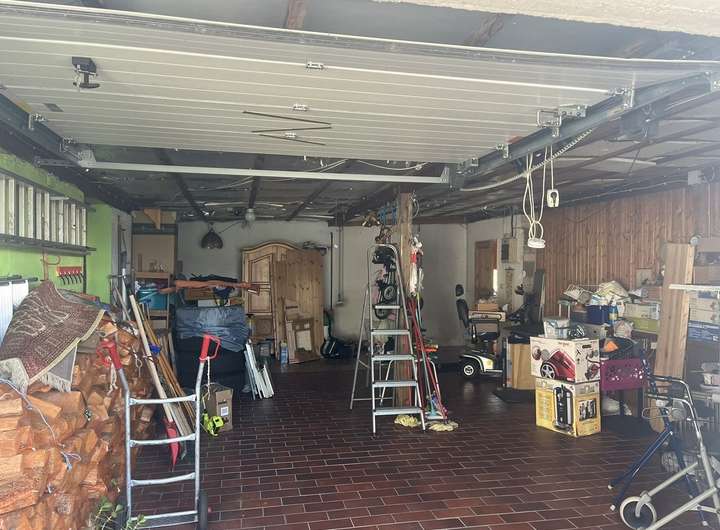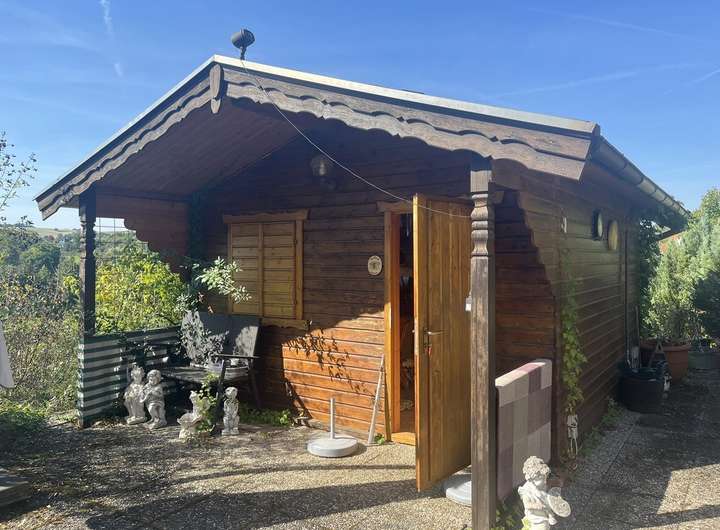 Eine großzügige Garage, ein Gartenhaus mit Stromanschluss, ein Unterstand und eine Werkstatt runden dieses Angebot ab.