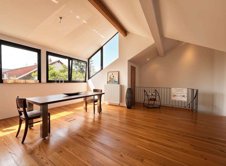 Ein echtes Highlight sind die hochwertigen Bodenbeläge, die dem gesamten Haus einen besonderen Charakter verleihen. Hier treffen afrikanischer Schiefer, edle Holzböden, Jura-Marmor und elegante Steinfliesen aufeinander und bieten ein stilvolles Ambiente, das keine Wünsche offenlässt.