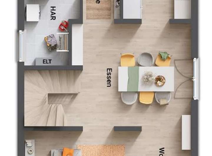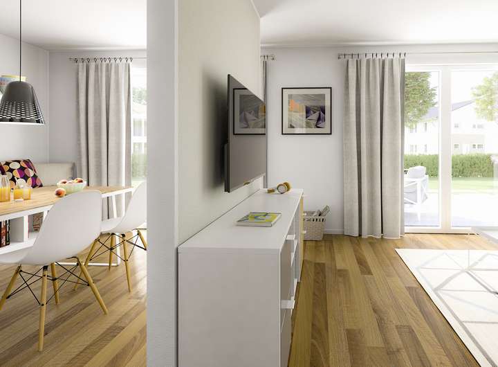 Die durchdachte Grundrissgestaltung schafft sowohl Rückzugsorte als auch offene Wohnzonen für gemeinsame Momente – perfekt für Paare oder Familien, die modernes Wohnen mit Wohlfühlcharakter suchen.