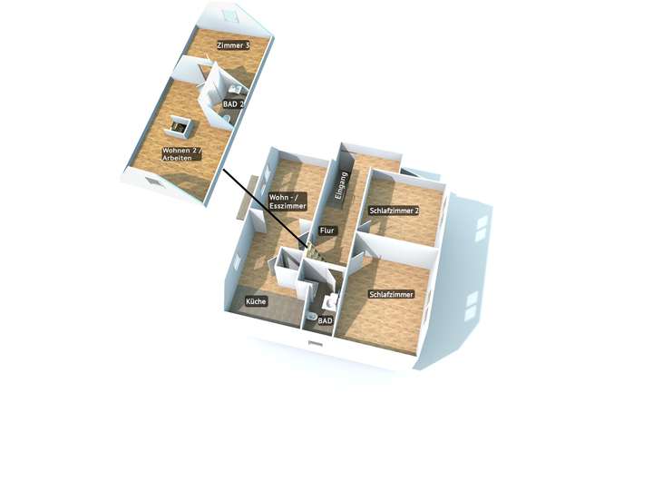 # Es handelt sich um ein 2 Familienhaus mit einem weiteren Appartment im hinteren Teil des Grundstücks, alle technisch voneinander getrennt.