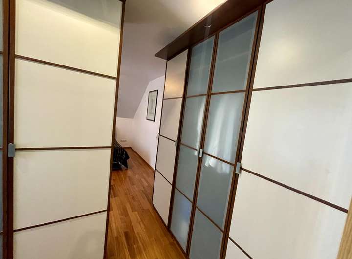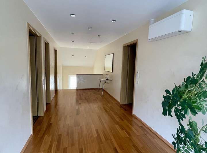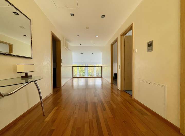 Im Obergeschoss erwartet Sie ein Elternschlafzimmer mit eigener Ankleide und Bad, sowie zwei weitere Schlafzimmer und ein zusätzliches Badezimmer - optimal für Kinderzimmer oder Büro.