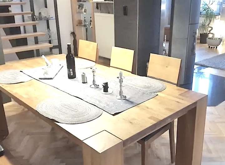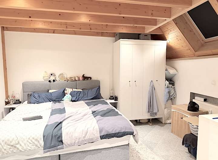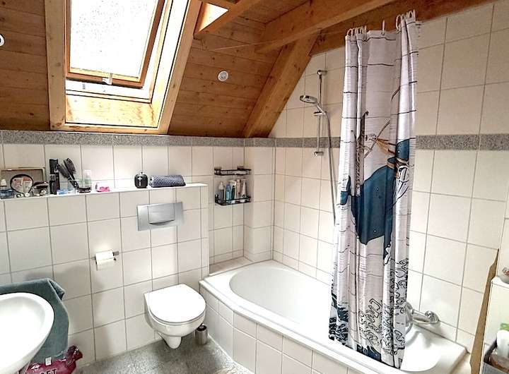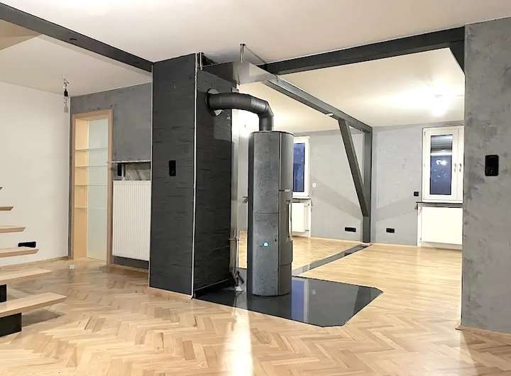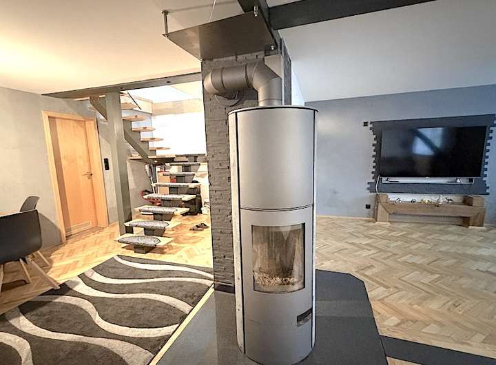 Den Mittelpunkt der Wohnung bildet der großzügig gestaltete Wohn- und Essbereich. Ein Holzofen agiert als stimmungsvolle Alternative zur Zentralheizung und bildet gleichzeitig den perfekten Rahmen für gesellige Mahlzeiten oder beschauliche Stunden mit einem guten Buch bei prasselndem Feuerschein. Die separate Küche vereint ansprechendes Design mit moderner Funktionalität. Ein Schlafzimmer, das Tageslichtbad und die Diele im Eingangsbereich komplettieren den Grundriss des Obergeschosses. Eine innenliegende Treppe verbindet den Essbereich mit der stilvoll als Studio gestalteten Wohnebene im Dachgeschoss. Zusätzlich stehen dort noch etwa 20 m² Ausbaureserve zur Verfügung – ideal für ein weiteres Schlafzimmer, ein Büro oder Atelier.