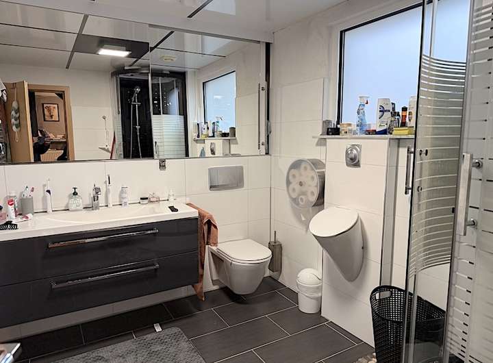 Im Erdgeschoss dieses Hauses wurde die Heizungsanlage für die komplette Liegenschaft integriert. Direkt angrenzend bietet der großzügige Wintergarten mit Terrasse allen Bewohnern gleichermaßen einen angenehmen Rückzugsort und eignet sich hervorragend für entspannte Stunden oder die kleine Feier mit Gästen. Die beiden zusätzlichen Räume bilden gemeinsam mit einem weiteren Raum im Untergeschoss eine funktionale Einheit, die aktuell als Büro- und Lagerfläche genutzt wird.