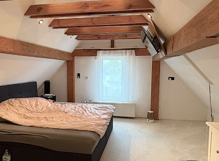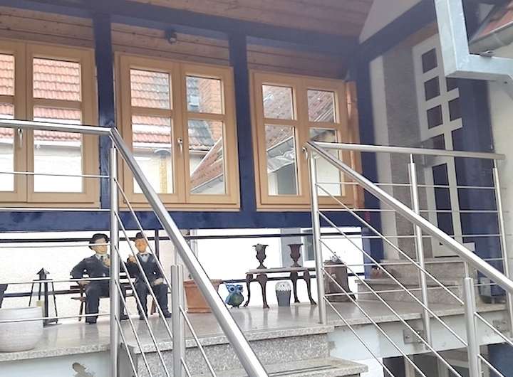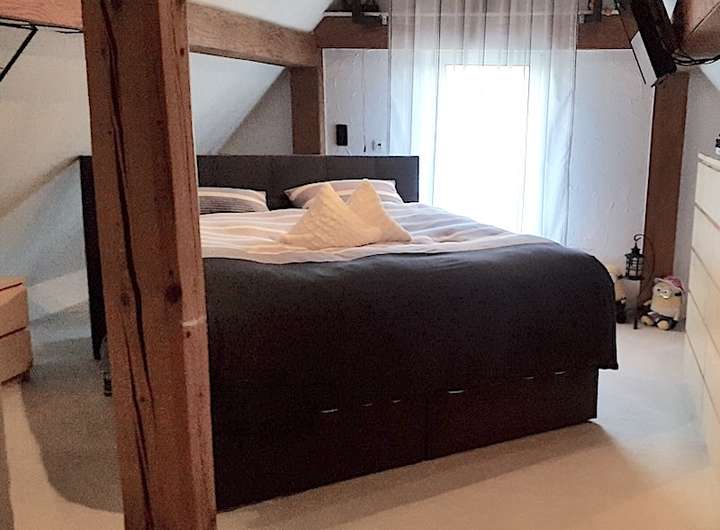 Eine Außentreppe für durch einen malerischen Laubengang, der beide Häuser miteinander verbindet, zu der charmanten Maisonettewohnung die sich über das komplette 1.OG und zum Teil über das Dachgeschoss erstreckt. Das offengelegte Fachwerk in Verbindung mit den hellen großzügigen Räumen schafft diese ganz besondere Wohnatmosphäre, die nur in Häusern mit Vergangenheit zu finden ist.