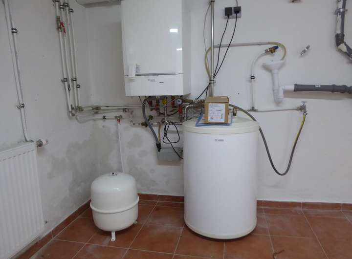 Die Gaszentralheizung versorgt das Haus auch mit warmem Wasser.