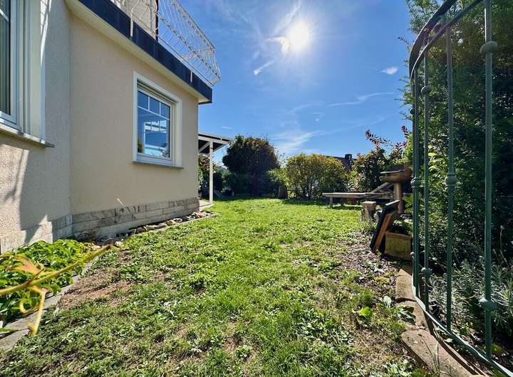 ... entkoppelte Zugänge: Hauptwohnung auf der Südseite, ELW und Büro auf der Ostseite vom Haus