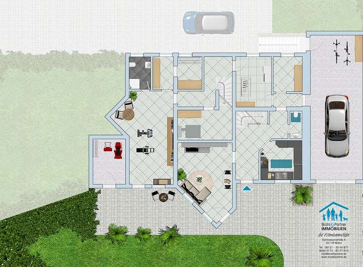 - durchdachter Grundriss mit 3 ebenerdigen Zugängen ergeben eine vorteilhafte Aufteilung