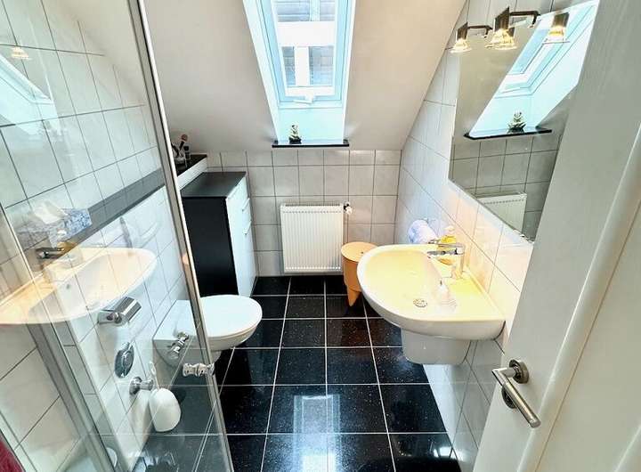 In der zweiten Ebene erwarten Sie das Schlafzimmer und derzeitige Büro sowie ein Balkon und Ihre ca 40 qm große Dachterrasse.