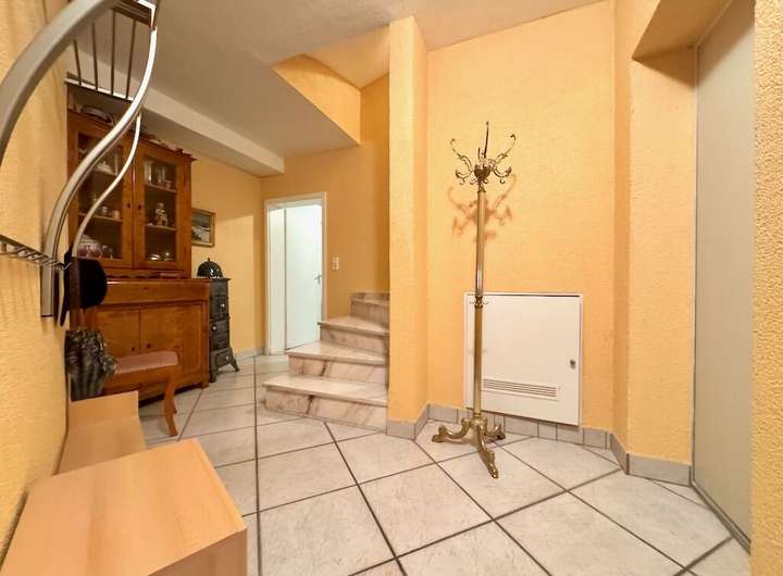 Der massive Treppenabgang führt ins Untergeschoss mit einer Einheit von ca 40 qm smt Tageslichtbadezimmer und Nebenraum (ggf. Küche) - Büro, Gästebereich oder RB&B sind Möglichkeiten dank dem eigenenständigen Zugang von der Ostseite.