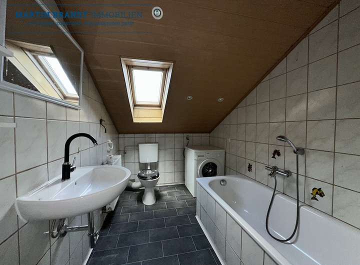 - 3 Badezimmer mit Fenster, Badewanne oder Dusche, WC, türhoch gefliest