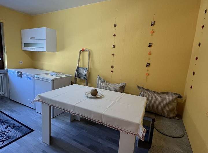 Im Erdgeschoss finden wir: 1 Schlafzimmer, 1 Bad mit Wanne, eine Küche mit Ausgang nach draußen so wie ein großzügiges Esszimmer. Von diesem Zimmer wurde eine Abstellmöglichkeit mit Leichtbauwänden abgetrennt, sehr praktisch.