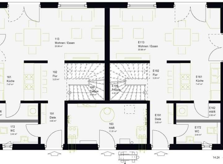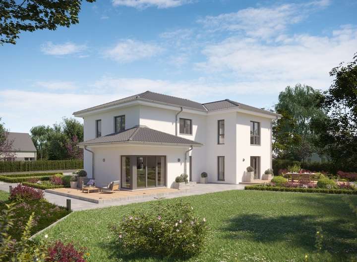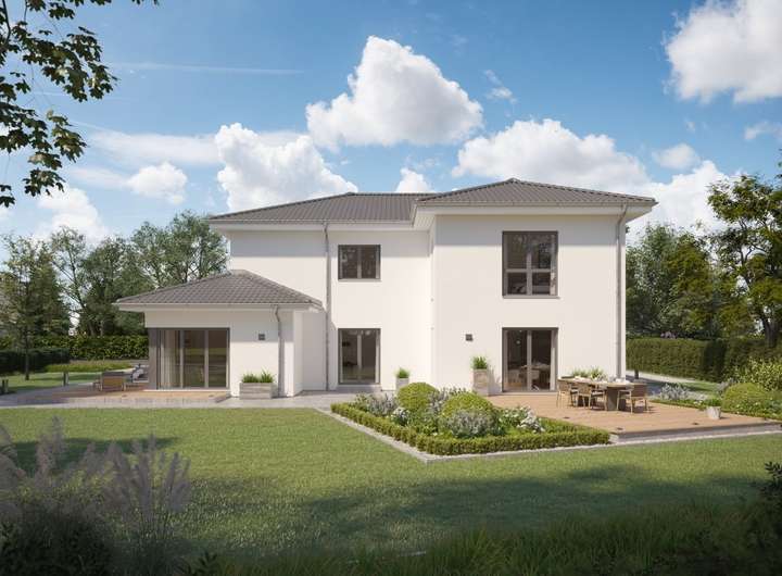 Ein Walmdach ist der absolute Hingucker, insbesondere bei einem Haus mit toskanischem Flair wie dem FamilyStyle 20.04 W: Zwei doppelstöckige Wohnungen auf insgesamt 204,24 m² Wohnfläche bilden eine perfekte Einheit unter einem Dach. Der Grundriss der spiegelbildlich angeordneten Wohneinheiten kann in der Planungsphase angepasst werden; auch Architektur-Upgrades sind möglich und verleihen dem Haus eine ganz besondere Ausstrahlung. Das FamilyStyle 20.04 W ist ein besonderes Eigenheim für mehrere Generationen, die die räumliche Nähe zueinander suchen - aber eben auch ihre Privatsphäre genießen. Beiden Wohnparteien stehen je ein Untergeschoss mit offenem Küchen-, Ess- und Wohnbereich zur Verfügung sowie das Stockwerk darüber mit Schlafzimmern und Bad. Das ist modernes Mehrgenerationen-Wohnen!