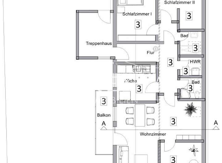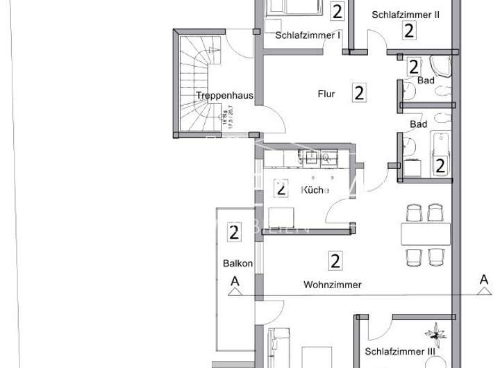 - Obergeschosswohnung: ca. 113 m² mit Balkon