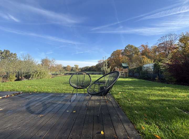 - ca. 40m² Süd-West-Holzterrasse mit Feldblick