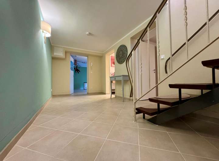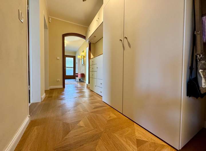 Zur Immobilie gehört zudem eine außergewöhnlich lange Garage mit direktem Zugang in den Garten sowie bis zu vier Stellplätze vor der Garage – ein seltener Komfort in dieser Lage.