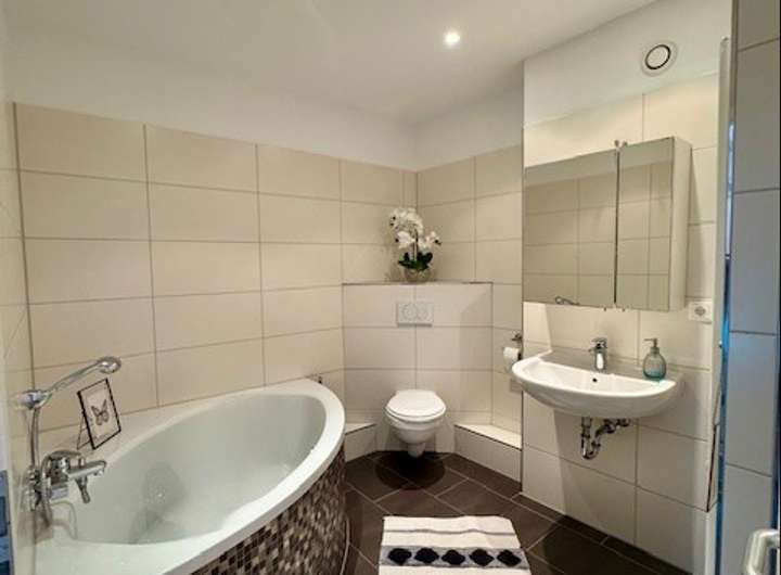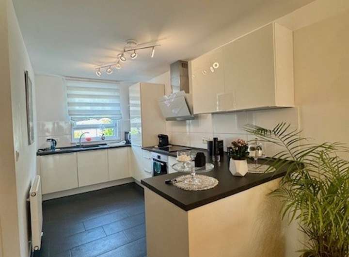 Die moderne Einbauküche, hochwertige Bodenbeläge sowie ein gepflegtes Badezimmer unterstreichen den hochwertigen Gesamteindruck des Hauses. Zusätzlich stehen praktische Abstellmöglichkeiten und ein Hauswirtschaftsraum zur Verfügung.