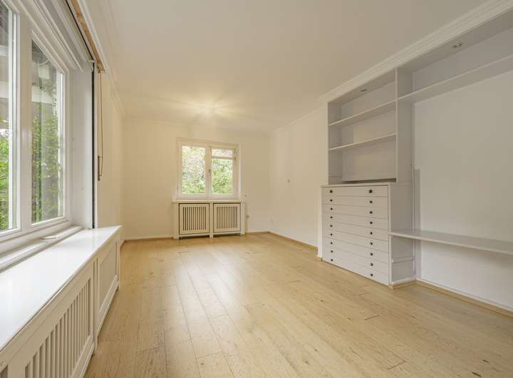 Mit einer Wohnfläche von ca. 167 m² sowie zusätzlicher Nutzfläche von ca. 86 m² bietet das Haus genügend Platz für die gesamte Familie. Das Haus präsentiert sich als solides, charmantes Einfamilienhaus mit fünf Zimmern, einem Duschbad und Gäste-WC im Erdgeschoss, einem Wannenbad im Dachgeschoss sowie einem Saunabereich mit Dusche im Untergeschoss. Der offene Wohn- und Essbereich mit angrenzender Küche im südöstlichen Teil des Hauses lässt von allen Seiten den Blick ins Grüne zu.