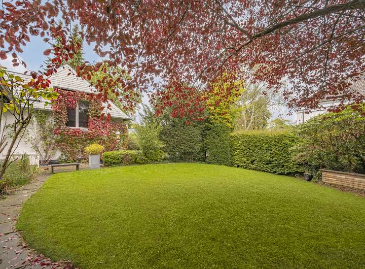 Auf einem ca. 1.199 m² großen Südwestgrundstück entstand hier im Jahr 1955 ein Architektenhaus, das um 1966 erweitert und in 2005 modernisiert worden ist. Das Grundstück bietet einen liebevoll angelegten, nicht einsehbaren Garten mit weitläufigen Rasenflächen und verschiedenen idyllischen Sitzplätzen. Ein überdachter, windgeschützter Freisitz sowie eine gepflegte Einfriedung durch Mauern und Zäune schaffen ein hohes Maß an Privatsphäre.