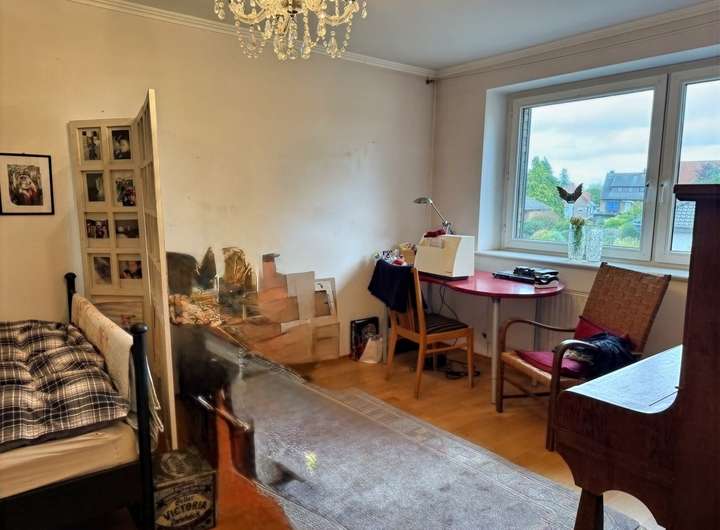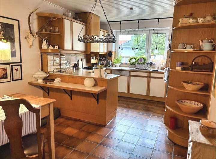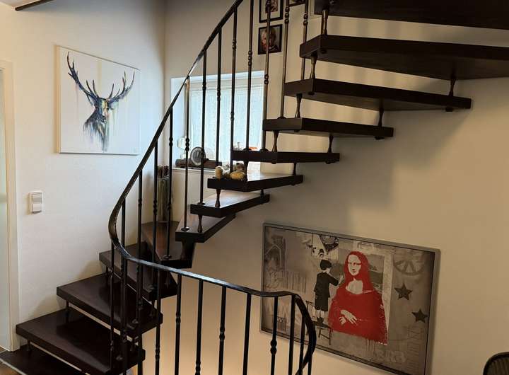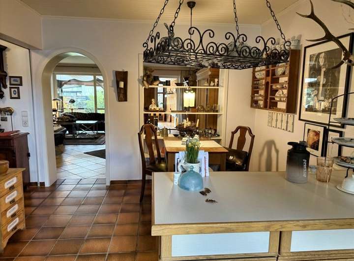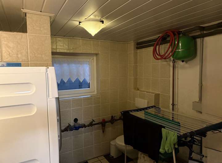 Im Erdgeschoss befinden sich die Küche, das Wohnzimmer und der Wintergarten. Im Flurbereich wäre der Einbau eines Gäste-WCs ohne große bauliche Maßnahmen möglich, da hier noch entsprechende Anschlüsse liegen.