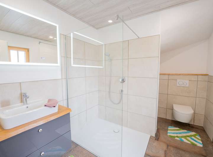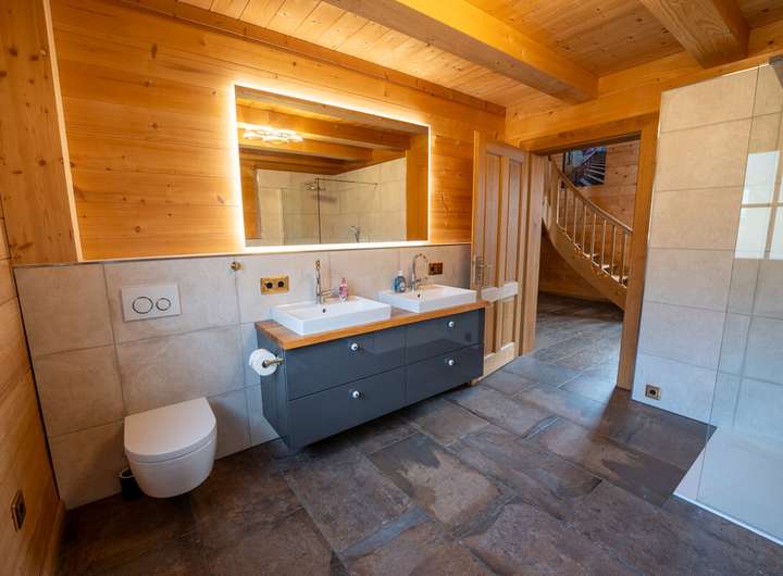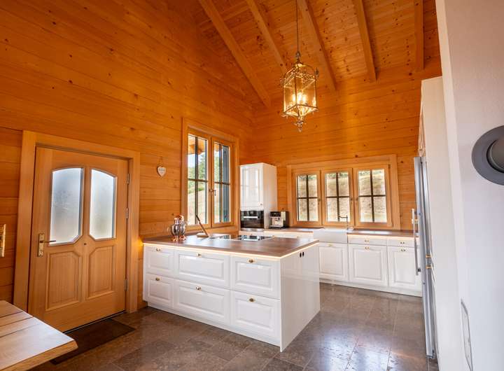 Beim Bau des Hauses wurde höchster Wert auf die Auswahl natürlicher Materialien gelegt.Hochwertiges Holz und Naturstein stehen für Wohngesundheit. Viele Annehmlichkeiten dürfen Sie dennoch erwarten: Fußbodenheizung, moderne Badezimmer, die hochwertige Einbauküche mit Kochinsel sowie moderne Haustechnik schaffen ein rundes
