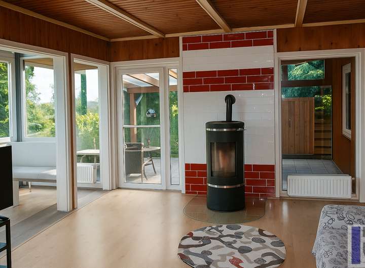 - wasserdurchlaufener Pelletofen-Kaminofen im Wohnbereich mit zentraler Warmwasserversorgung, Marke Paradigma, Typ Oranien, Baujahr 2021, Inbetriebnahme 2022;