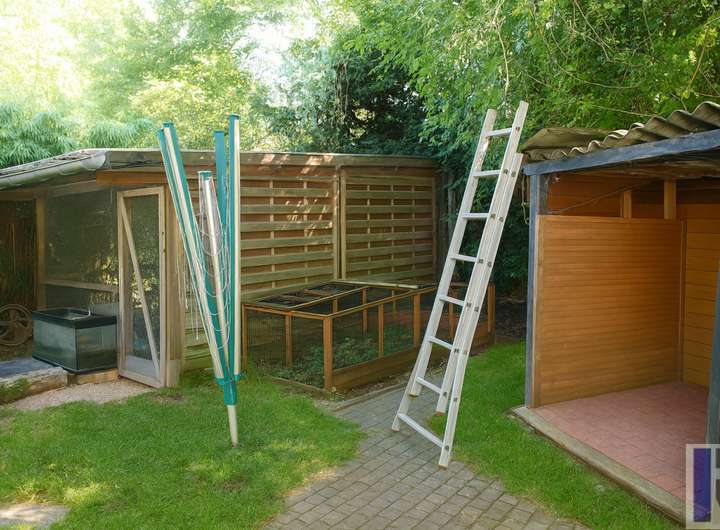 Ein Carport, ein Gartenhaus, eine Vogelfoliere sowie zusätzliche Lagermöglichkeiten runden dieses Angebot ab.