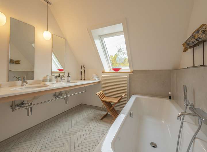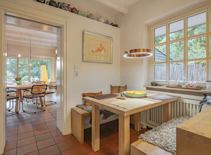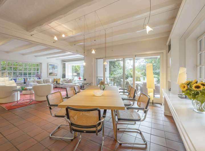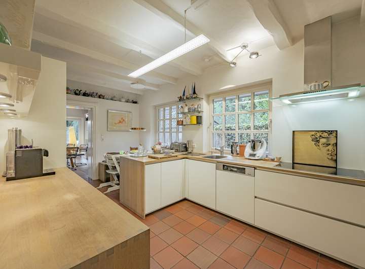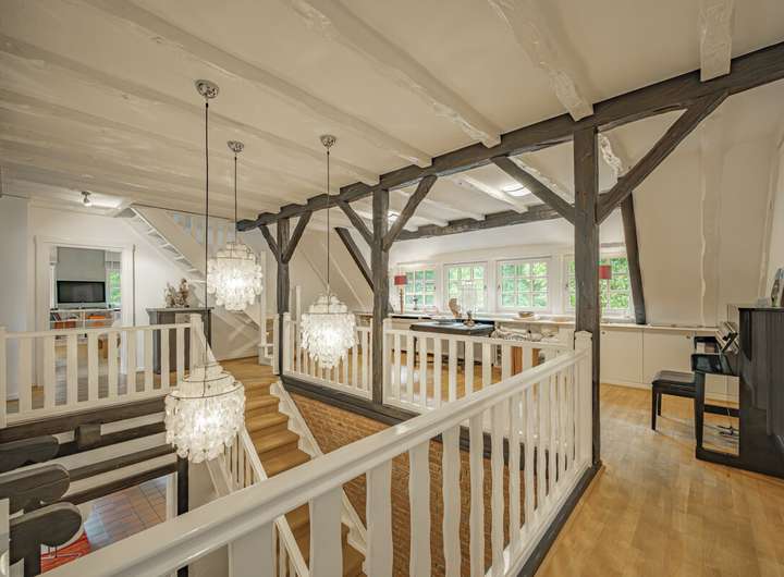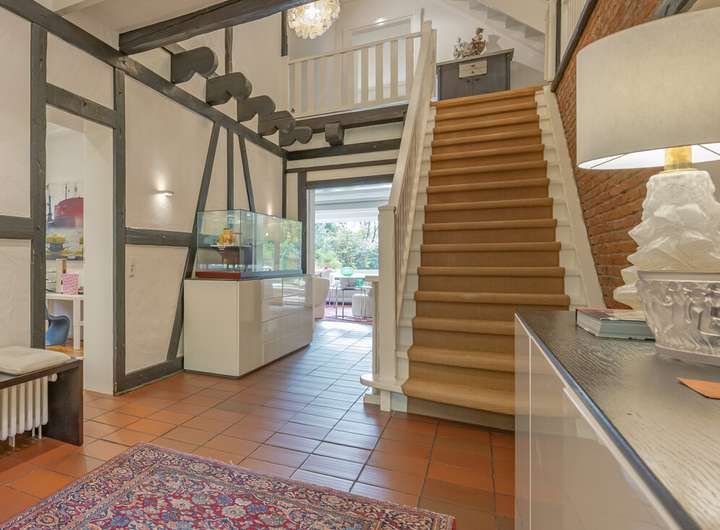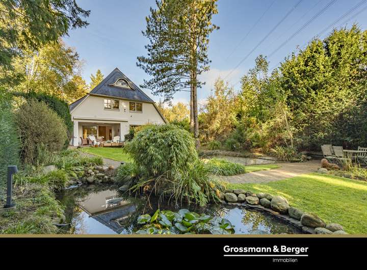 Dieses liebevoll gepflegte Architektenhaus aus dem Jahr 1976 mit heller Klinkerfassade und den grünen Sprossenfenstern ist ein Zuhause zum Verlieben. Das große Haus überzeugt durch eine offene Bauweise im Fachwerkstil und bietet mit seiner durchdachten Raumaufteilung viel Platz für kleine und große Familien. Das ca. 1.947 m² große Grundstück liegt zurückversetzt von der Straße und ist nicht einsehbar. Die optimale Ausrichtung und die Größe des Grundstücks lassen keine Wünsche offen, ob einfach Entspannen auf der sonnigen und windgeschützten Terrasse oder am Gartenteich, zum Fußballspielen oder Höhlenbauen, hier ist Platz für alle. Neben der Großzügigkeit im Haus auf den oberen Etagen findet sich im Untergeschoss ein besonderes Highlight: der große Wellnessbereich mit Pool, XL-Dusche, Sauna und großer Schiebetür, die direkt in den Garten führt. Darüber hinaus bietet das Untergeschoss Platz für einen großen Hobbyraum, zusätzliche Abstellflächen sowie Technikräume für Pool und Heizung. Eine Doppelgarage mit Wallbox für E-Autos sowie ein separater Abstellraum für Fahrräder und ein Carport ergänzen das Angebot. Das Objekt verbindet Wohnkomfort mit Privatsphäre in naturnaher Lage – ideal für anspruchsvolle Käufer.