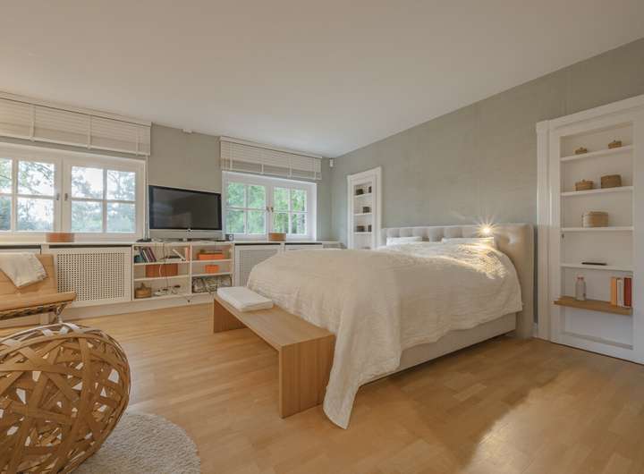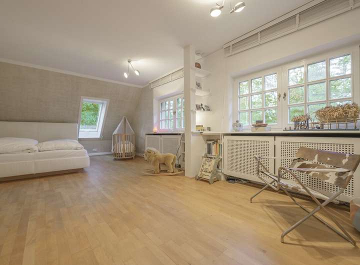 Dieses großzügige Einfamilienhaus überzeugt mit einer Wohnfläche von ca. 339 m² sowie ca. 82 m² zusätzlicher Nutzfläche und bietet dank seiner durchdachten Raumaufteilung viel Platz für komfortables Wohnen. Das lichtdurchflutete Entree mit einer Galerieebene im Obergeschoss vermittelt ein offenes Wohngefühl. Es unterstreicht die Großzügigkeit des Hauses und schafft eine besondere Atmosphäre. Das Herzstück des Hauses ist das weitläufige Wohn- und Esszimmer mit einer gemütlichen Kaminecke – perfekt für entspannte Stunden im Familienkreis oder gesellige Abende mit Freunden. Die Küche, an die direkt angrenzend sich der große Hauswirtschaftsraum befindet – ist bestens ausgestattet und bietet Platz für eine zusätzliche Sitzecke. Im Erdgeschoss befinden sich außerdem ein Arbeitszimmer, das Gäste-WC sowie die Garderobe. Im ersten Obergeschoss liegen das großzügige Masterschlafzimmer mit einem komfortablen Bad en Suite, ein zweites großes Zimmer, ein modernes Duschbad sowie ein halbes Zimmer, das sich als Ankleide oder weiteres Büro eignet. Das ausgebaute Dachgeschoss bietet Platz für zwei weitere große Zimmer, ein Duschbad sowie einen Abstellraum – eine perfekte Ebene für die größeren Kinder oder Gäste.