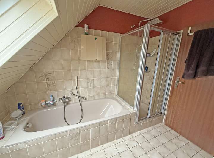 Badewanne, Dusche und WC.