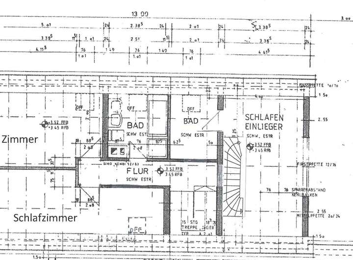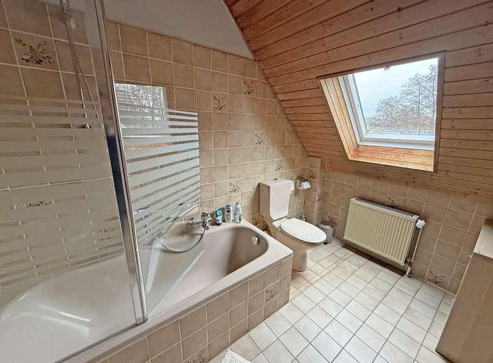 im Dachgeschoss Schlafzimmer sowie das Bad mit Tageslicht.