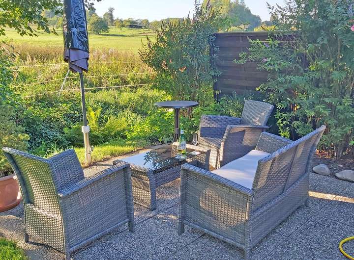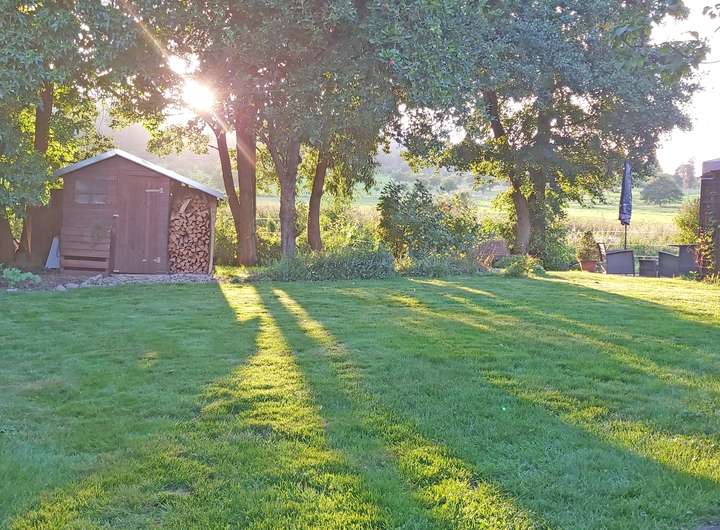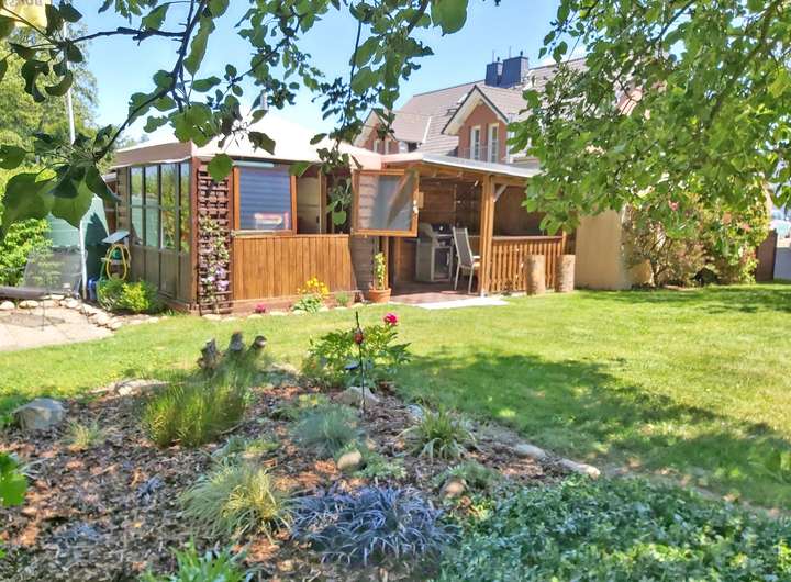 Von hier aus ist zur Terrasse und in den Garten mit Gartenhaus und Gartengerätehaus zu gelangen.