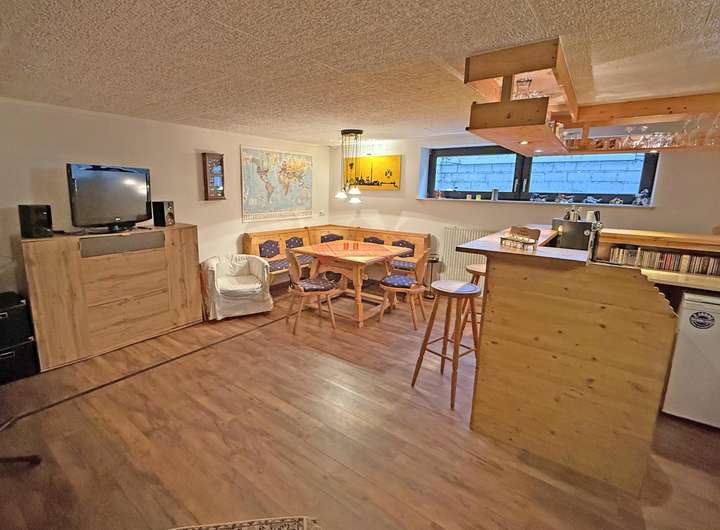 Der im Kellergeschoss wohnlich ausgebaute große Hobbyraum ist vielfältig nutzbar und optimiert das vorhandene Platzangebot des Hauses.