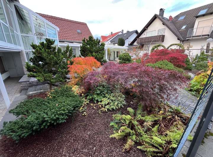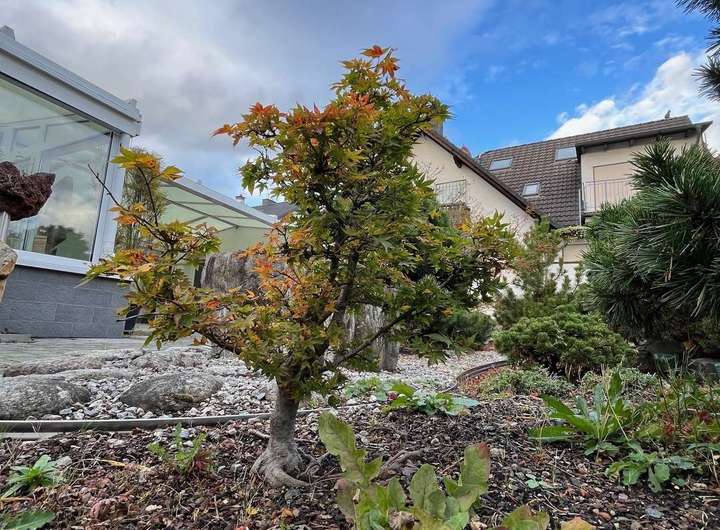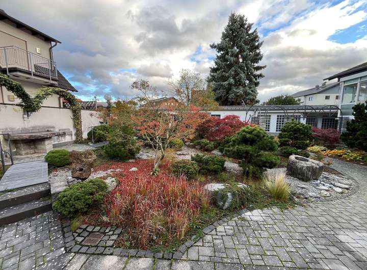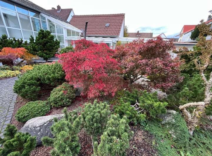 Der Garten wurde über die Jahre aufwändig mit viel Naturstein und besonderen Pflanzen gestaltet.