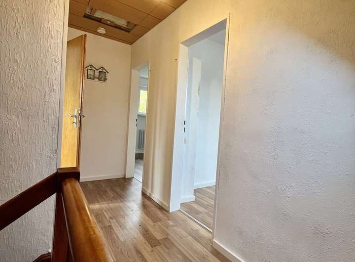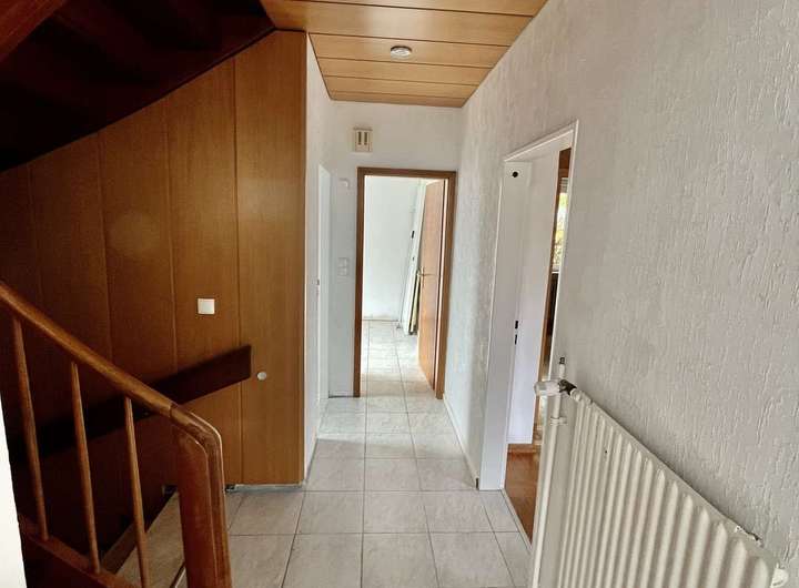 Das Haus bietet vielfältige Gestaltungsmöglichkeiten: vom offenen Wohn- und Essbereich über gemütliche Kinderzimmer bis hin zum ruhigen Elternschlafzimmer mit Blick ins Grüne. Einige Modernisierungen sind noch erforderlich – dafür haben Sie die Chance, Ihr Zuhause ganz nach Ihren eigenen Vorstellungen zu gestalten.