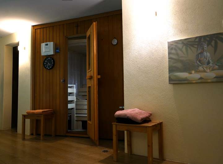 - Wellnessbereich mit Sauna, Dusche, WC und Ruheraum